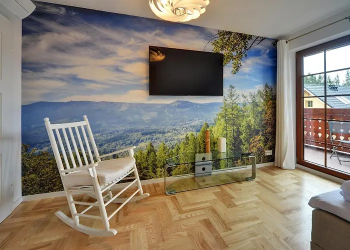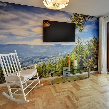 Das 150 m² große Trevilles Apartamenty Kasiowka - Apartament 13 Os Z 4 Sypialniami, 3 Lazienkami I Kominkiem Schreiberhau mit Blick auf die Berge liegt in 20 Gehminuten Entfernung von der Todeskurve in Schreiberhau.